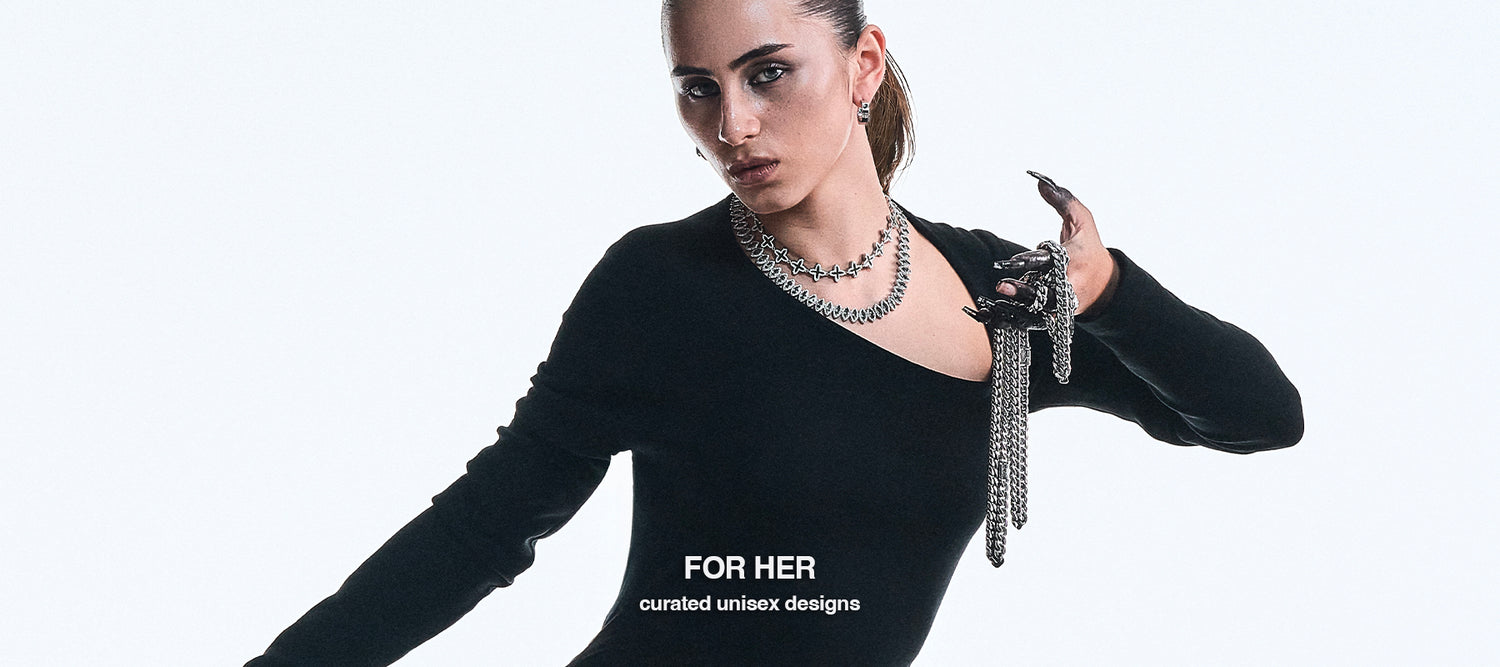 DARKAI jewels are hand crafted in solid gold and 925 silver for it's Fine Jewelry line. The Fashion Jewelry line is hand crafted in stainless steel, 925 silver and brass depending on each jewel. All jewels are deeply coated in 18 carats gold at 0.75 microns.